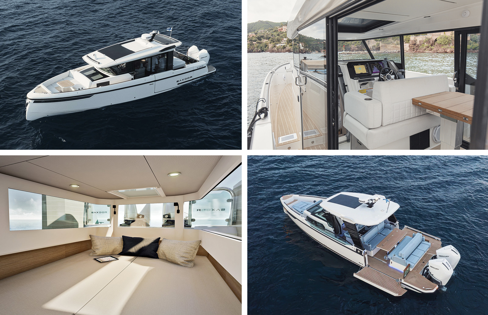 The Saxdor 340 GTWA sets a new standard in design and functionality for all-weather boating. This walkaround model seamlessly blends open-air enjoyment with protected comfort, offering a secure, weatherproof space that keeps you sheltered in all conditions. Equipped with lightweight, robust vacuum-infused construction and a two-stepped deep V-hull, it combines exceptional seafaring qualities with efficient fuel consumption, ensuring a smooth, high-performance driving experience. As the only wheelhouse walkaround model of its size featuring large side terraces, it offers expansive walkways and a vast open area, facilitating ease of movement and relaxation when opened. The spacious bow sofa and aft deck sunbed provide delightful spots to unwind and enjoy the breeze.