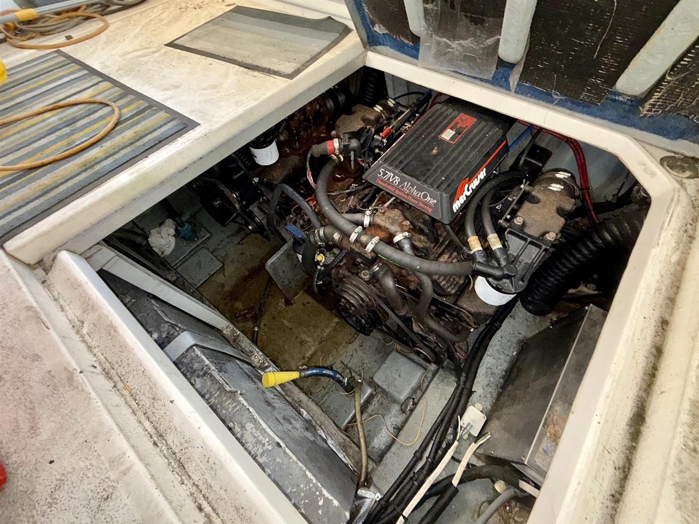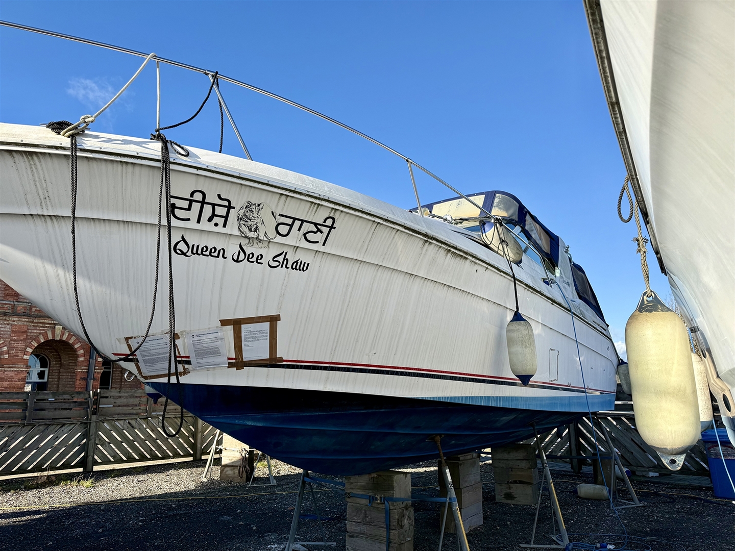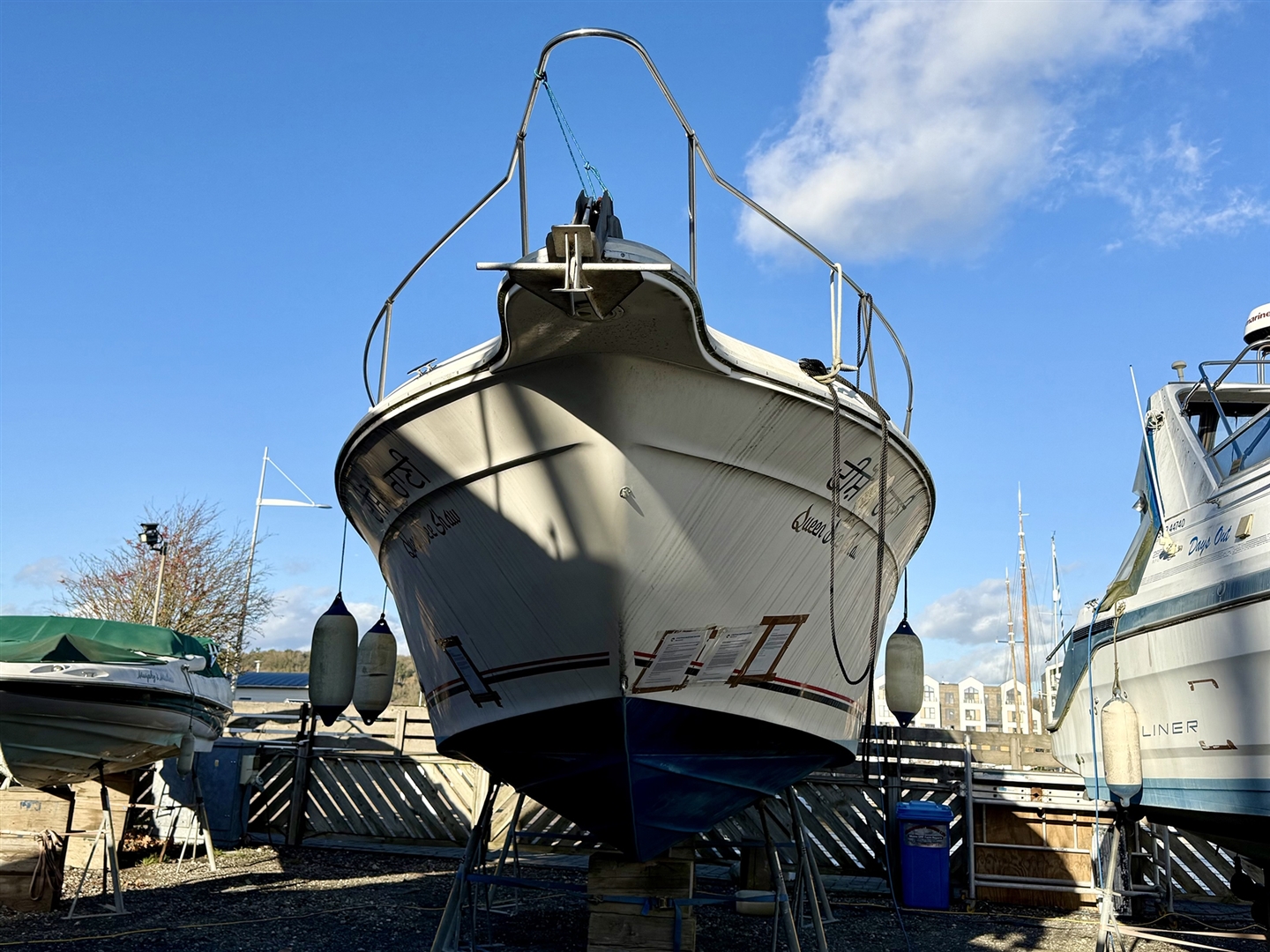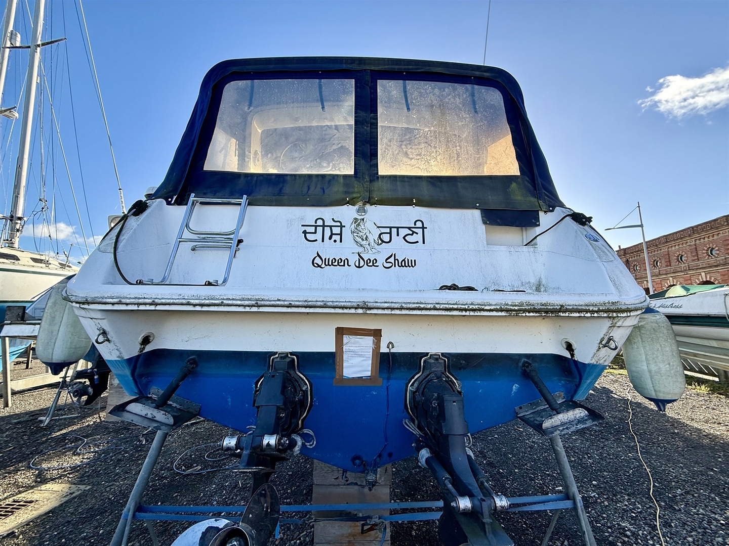 Queen Dee Shaw is a 9.1m (30') Sea Ray, currently residing at Chatham Maritime Marina in Kent. The engine looks to have seized and will require some considerable time and effort to get going again.