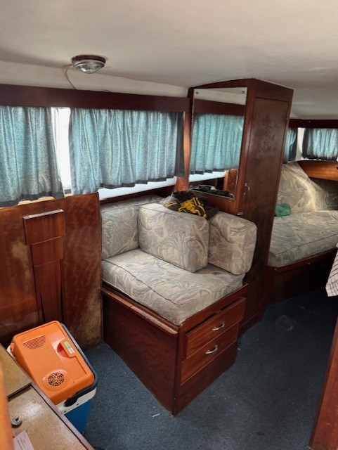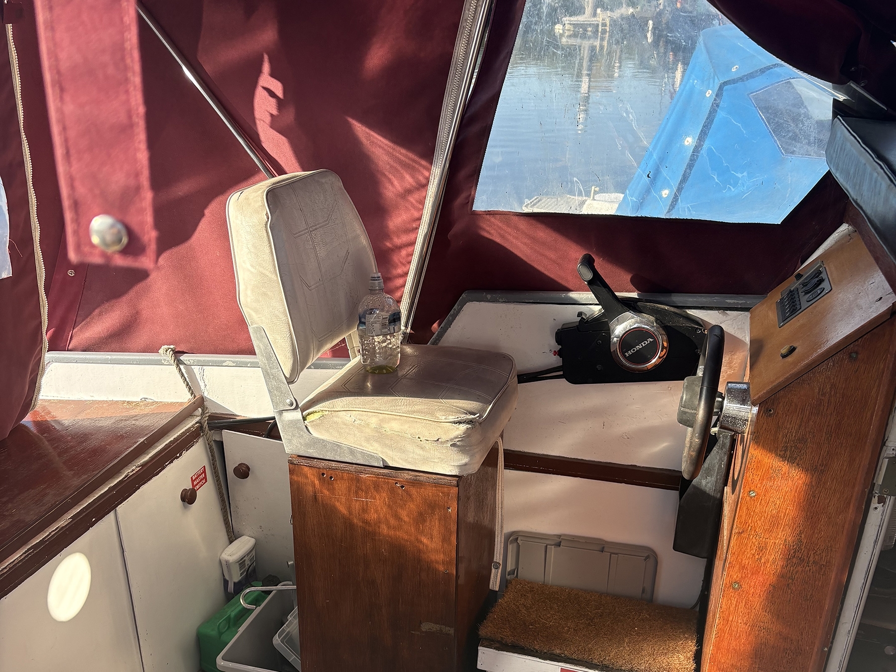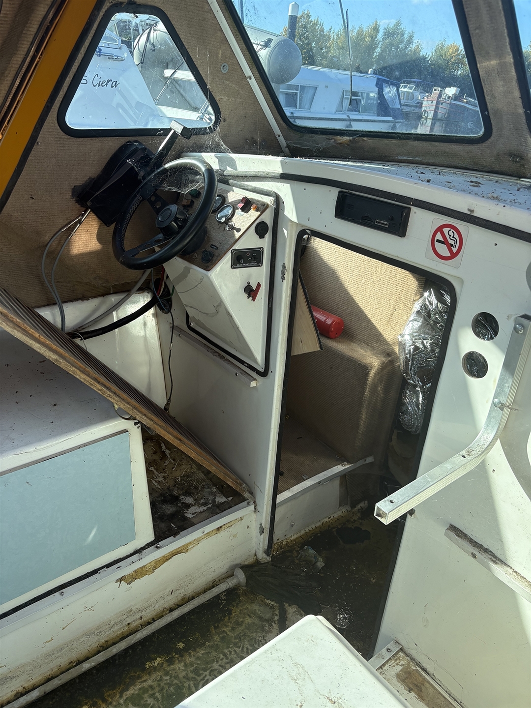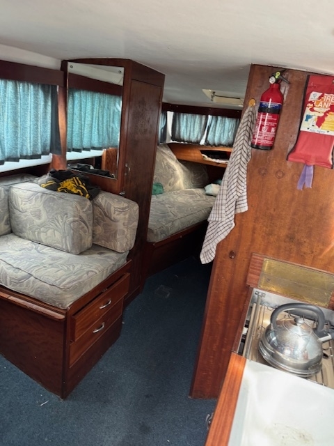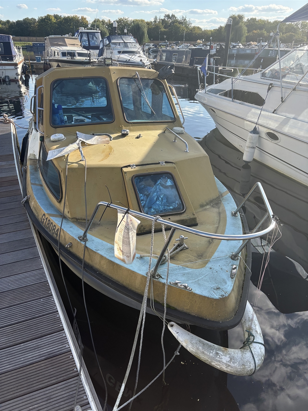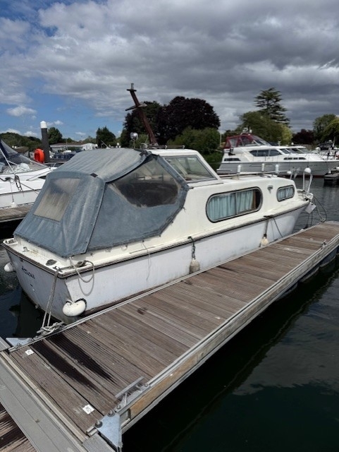 This 1970s Waverider Cruiser comes fitted with a 2-stroke 20hp Mercury outboard, which is not currently running. Built with solid fibreglass construction and featuring a sliding roof, she offers a sturdy foundation for restoration. The interior is in poor condition and will require full refurbishment, making her an ideal project for someone looking for a starter boat or a hands-on restoration opportunity. Please note, the vessel must be removed from the marina upon completion of sale, as no berthing or hard standing options are available.