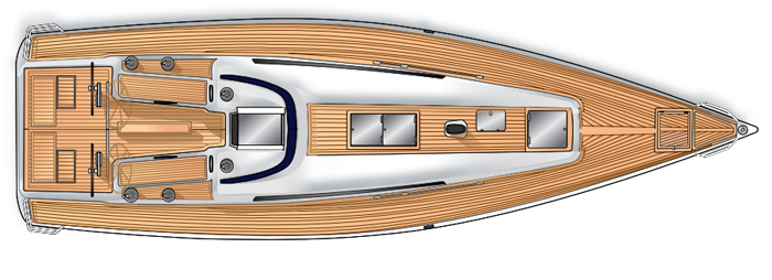 The Arcona 435 epitomises the characteristics of a very comfortable fast family cruiser and a racing yacht, without making any compromises. She is both safe and stable with laminated bulkheads and Arcona’s galvanised steel girder. She is a joy to sail as she responds quickly to trim input and doesn’t weigh more than 8990kg. The Arcona 435 can also be specified with carbon hull, deck and spars which reduces her weight further. Arcona 435 has a slightly larger sail area than previous models to give optimised upwind performance.