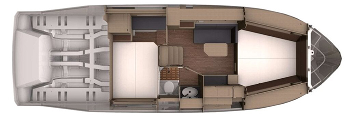 As with the sister ships of the SR‐LINE, the Bavaria SR35’s design and lines come from the famous Italian yacht designer Marco Casali and his team. The concept, layout and engineering are, of course, from Bavaria's experienced development team. The 11.40 m long and 3.46 m wide hull was optimised for rapid, safe handling characteristics by the experts from the naval architecture office Micad. Double engines from Volvo Penta and Mercruiser of 540 to 710hp provide powerful yet economical propulsion.